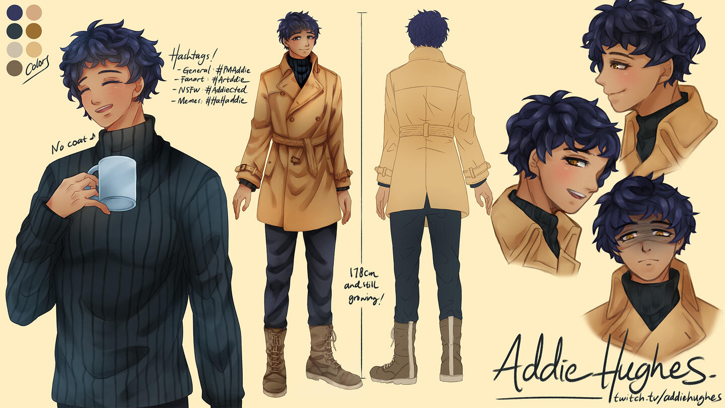 Character sheet will include front/back side, max 3 expressions, and one halfbody.